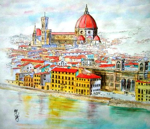 (イタリアのフィレンツェのダビデの丘からドゥオモをスケッチしました)