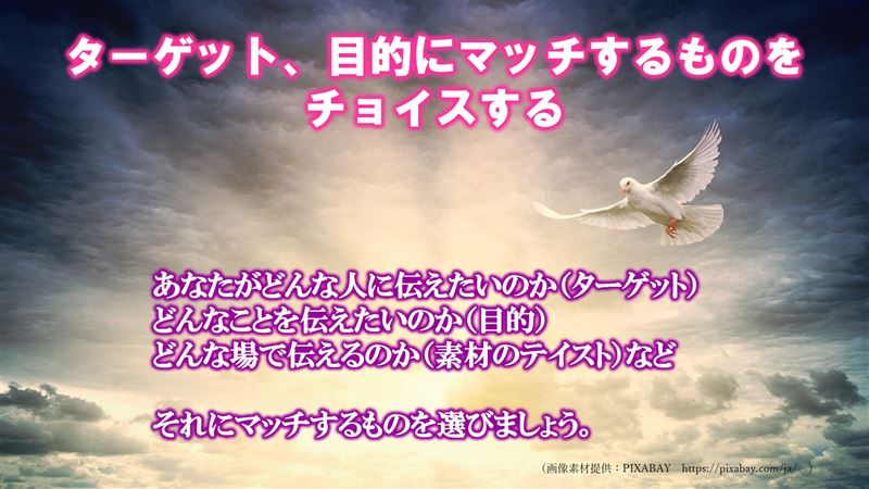 ターゲット、目的にマッチするものをチョイスする