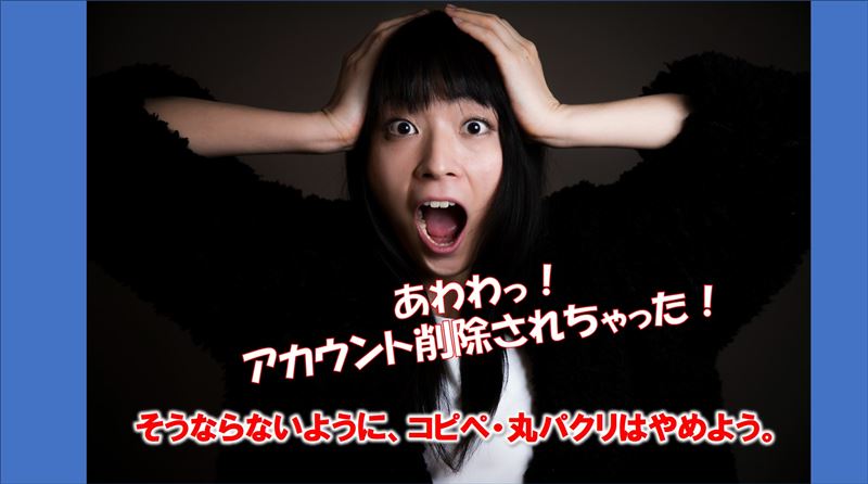 ひどい場合は、アカウントが削除されるというペナルティーを受けます。